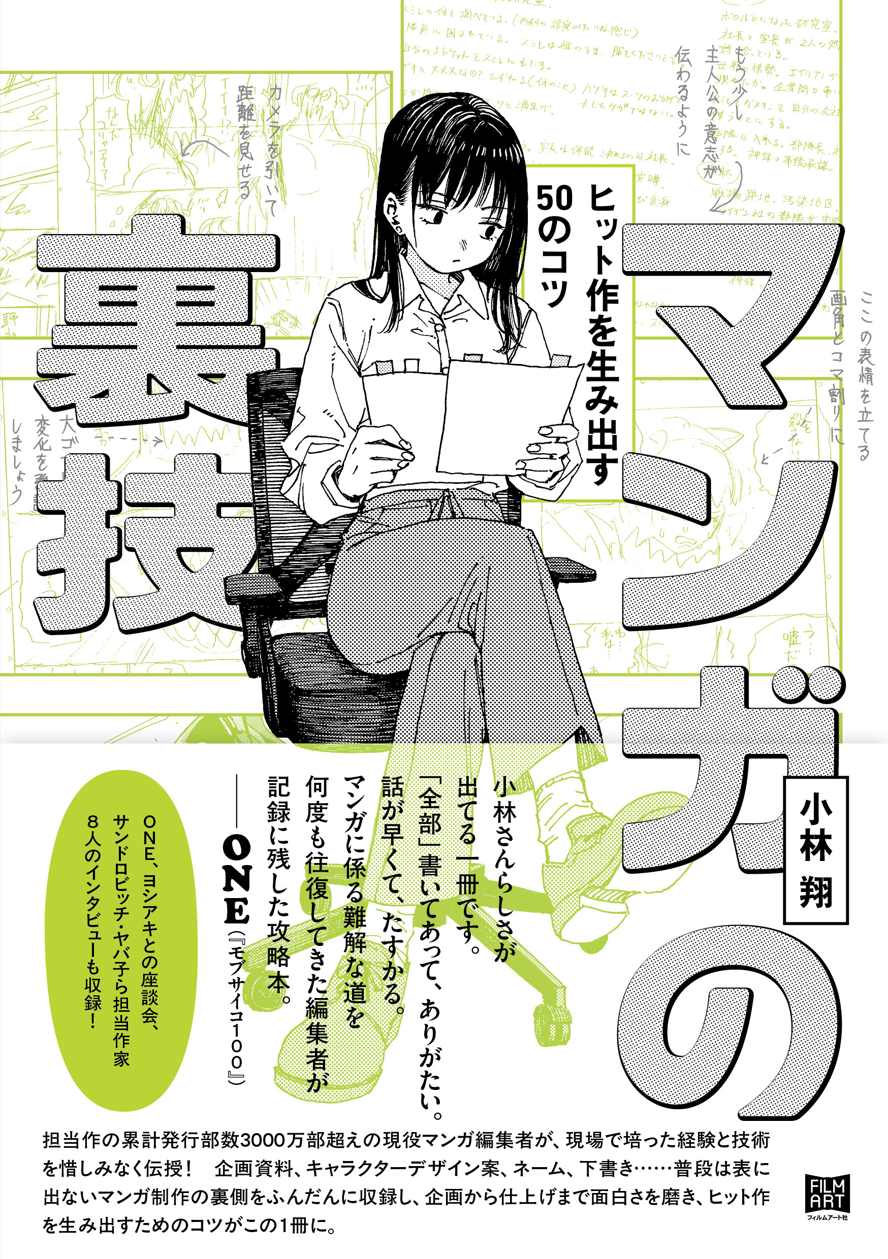 マンガ家との打ち合わせや協働のなかで培った経験と技術をもとに、「何を題材にするか」という企画の悩みから、「セリフの文字のサイズをどうするか」といった細部の仕上げまで、マンガ制作の重要な工程で使えるコツ(裏技)を余すことなく詰め込んだ本書。企画・ネタ、世界観・キャラクター、ストーリー・構成、コマ割り、作画・仕上げと工程ごとに読者の感情を揺さぶるためのコツが50章に分けて書かれており、制作中つまづいたところからでも読める設計になっています。